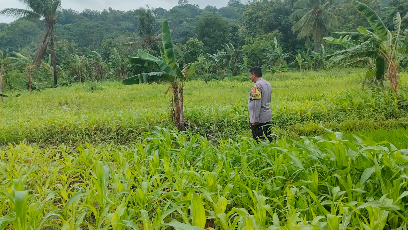 Pantau lahan jagung pok tani sinarjaya kecamatan.puloampel Desa margasari oleh Bhabinkamtibmas Polsek Puloampel