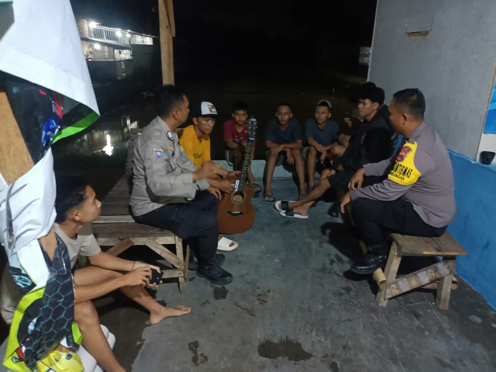 Anggota samapta  Polsek Cilegon sambangi ronda malam sampaikan pesan kamtibmas**-POLRES CILEGON-* Polda Banten. Dalam Rangka Ciptakan situasi kamtibmas yang kondusif Polsek Cilegon laksanakan himbauan kamtibmas kepada rt dan rw serta warga sekitar agar selalu menjaga kamtibmas secara bersama-sama salah satunya mengaktifkan dan meningkatkan kegiatan siskamling di wilayahnya. serta...