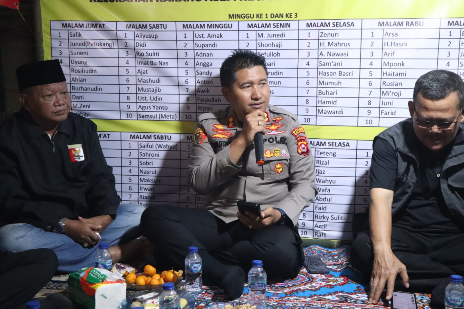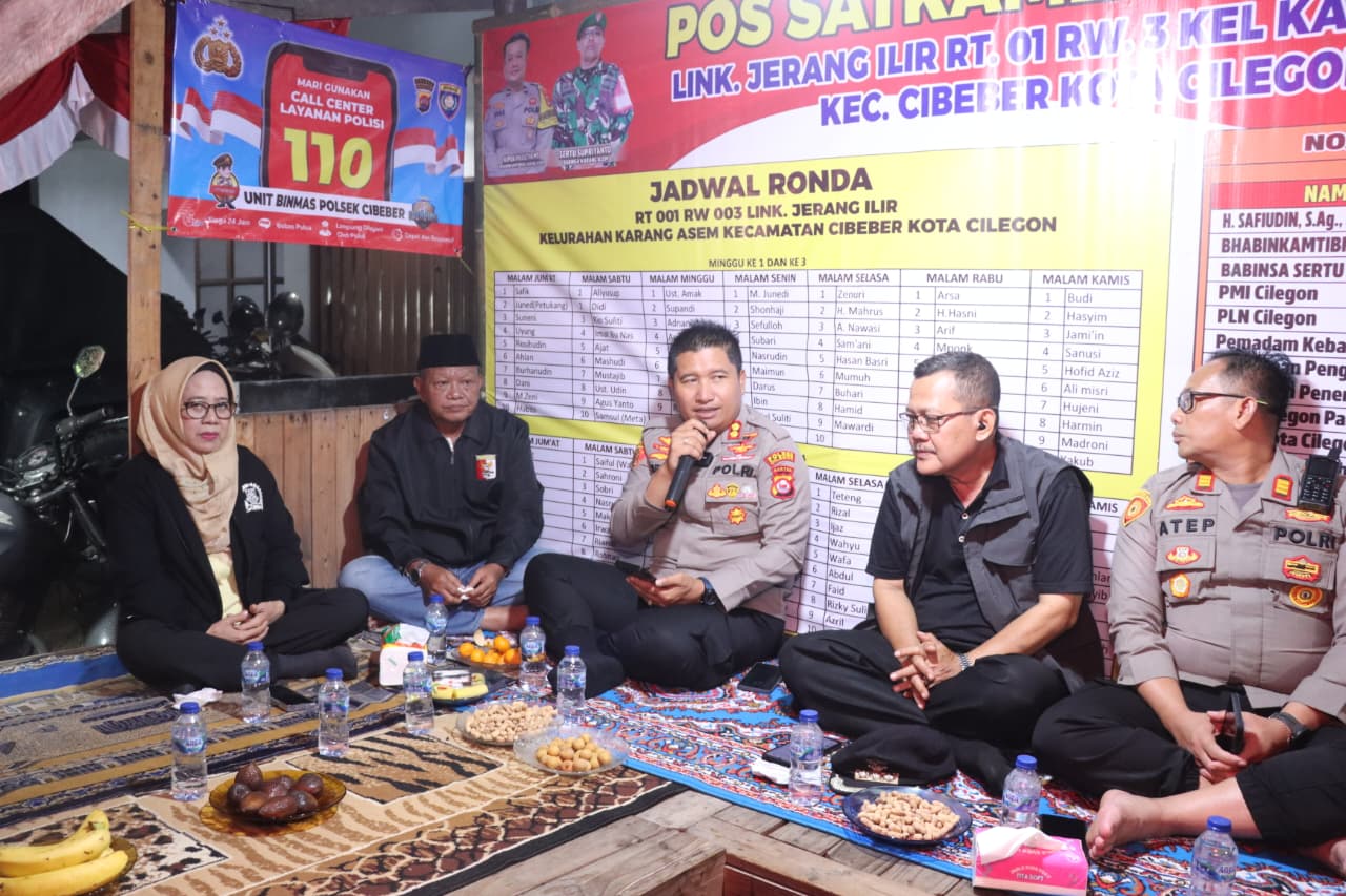 Anggota Polsek cilegon sambangi ronda malam sampaikan pesan kamtibmas jaga keamanan