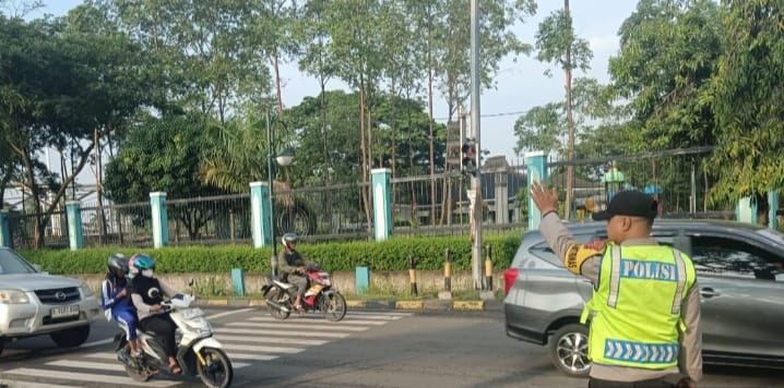 PERSONEL POLSEK PURWAKARTA GELAR STRONG POINT PAGI, ATUR LALU LINTAS DI PERSIMPANGAN ADB DEMI KELANCARAN ARUS LALU LINTAS