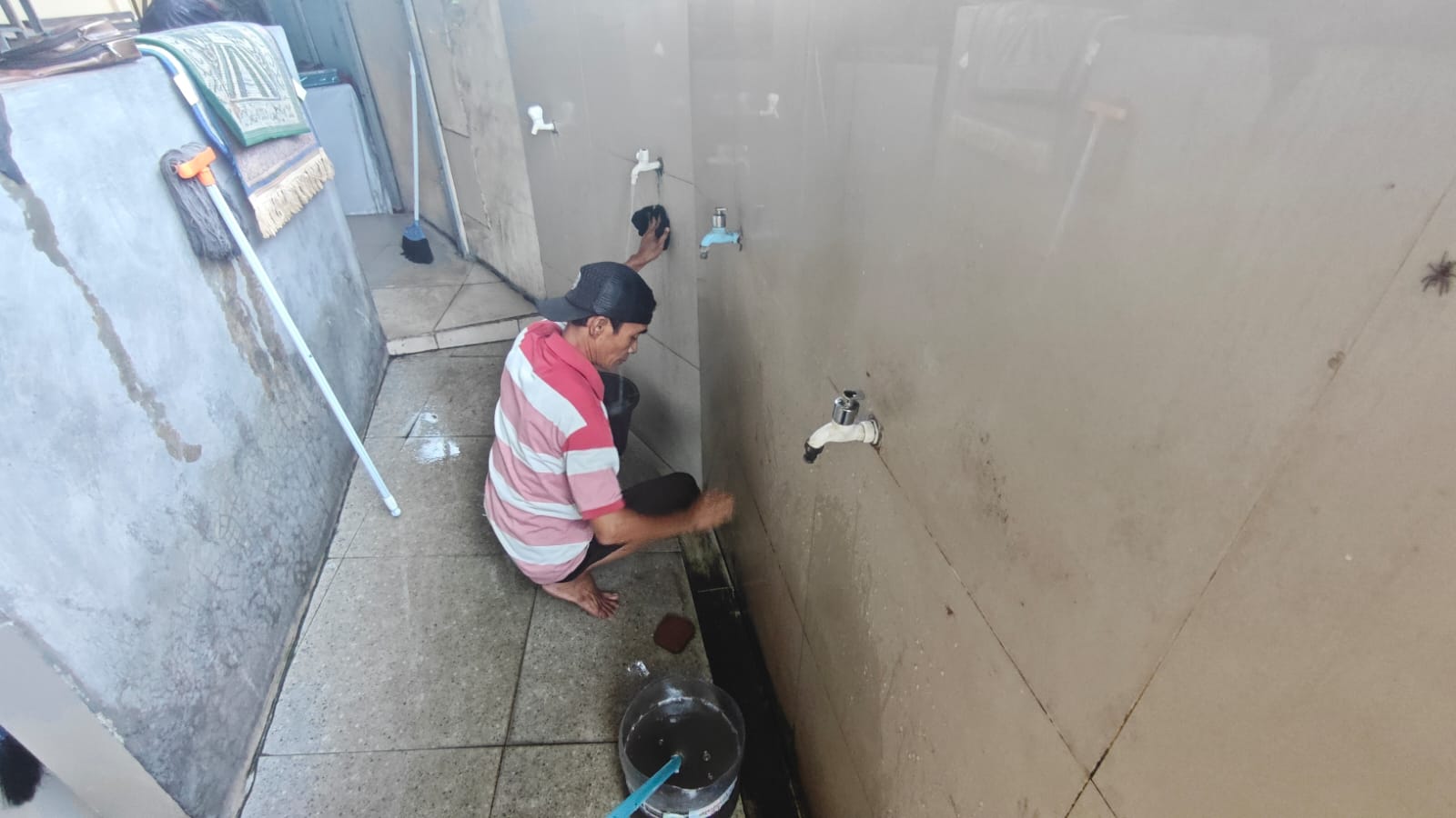 Personil Polsek Ciwandan Bersih-bersih Musholla