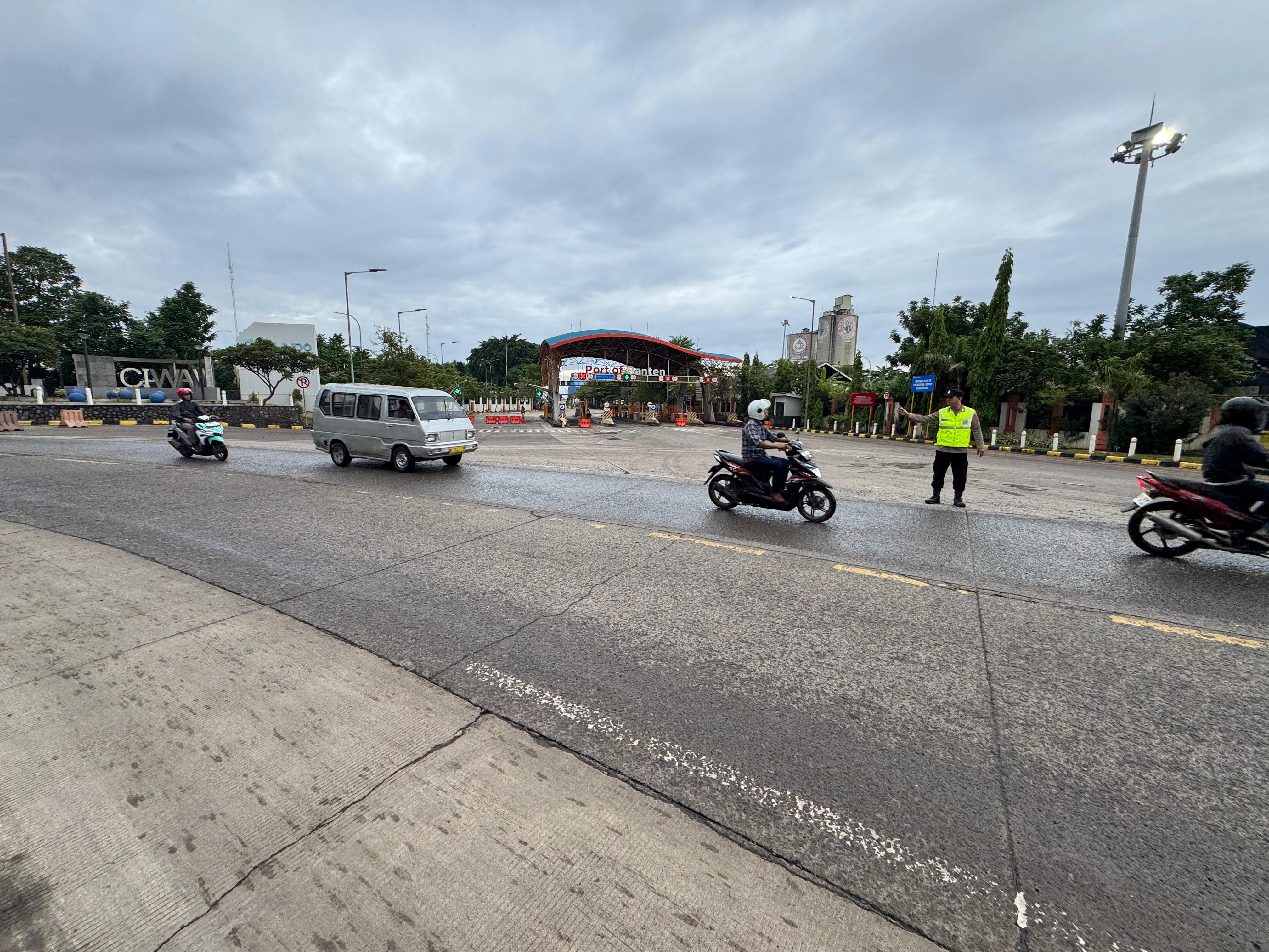 Kapolres Cilegon AKBP Martua Raja Taripar Laut Silitonga Melalui Kapolsek Kskp Banten Polres Cilegon AKP Fredo Leonard menyampaikan Laksanakan Pengamanan Sesuai plotinganya lakukan Pengaturan Supaya Arus Lalu Lintas tetap Berjalan lancar dan Pastikan tidak ada hambatan.
