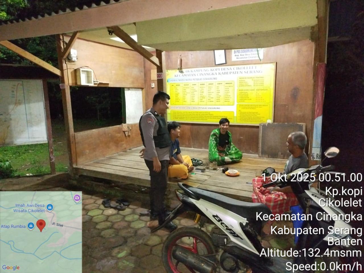 *Polres Cilegon* || Personel Bhabinkamtibmas Polsek Cinangka melaksanakan Program Commander Wish Kapolda Banten RONDA SATKAMLING menjalin komunikasi dengan Petugas Siskamling agar berperan aktif dalam menciptakan Harkamtibmas yang aman dan Kondusif, Rabu (01/10/2025).