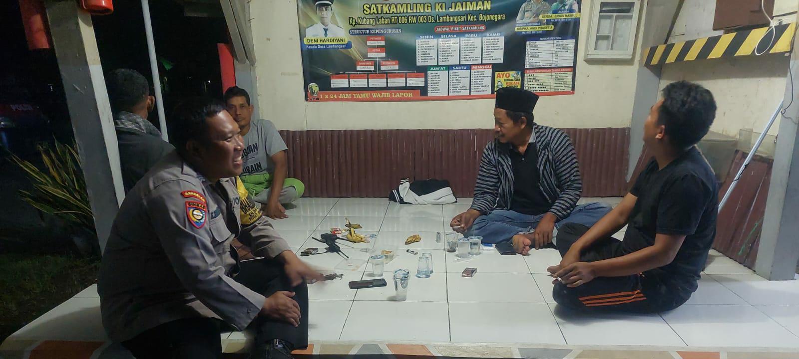 Warga Asik Ronda, Aipda Rossy Bersama Bripka Zenal Polsek Bojonegara Sambangi warga Di Pos Ronda Berikan imbauan kamtibmas