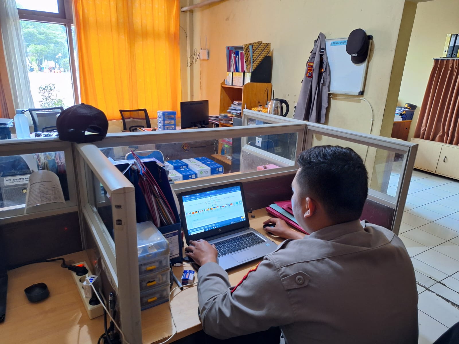 cilegon Polda Banten Staf Logistik melakukan pengisian aplikasi SIMAK dan SIMAN