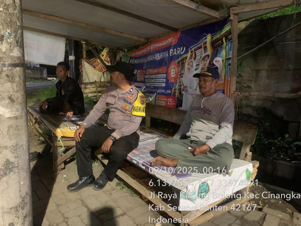 *Cilegon* – Dalam Rangka Pencegahan Kejahatan Jalanan dan Memelihara situasi keamanan dan menjaga serta memberikan rasa aman dan nyaman di masyarakat,Salah satu upaya untuk mewujudkan hal tersebut sebagaimana yang dilakukan oleh Personil Polsek Cinangka Polres Cilegon Polda Banten melaksanakan giat patroli blue light malam hari hingga menjelang pagi, Kamis (09/10/2025).