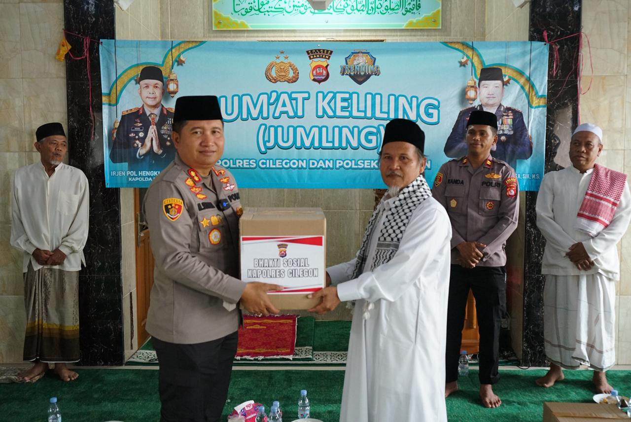 Cilegon – Dalam rangka mempererat hubungan antara Polri dan masyarakat, Kapolres Cilegon Polda Banten, AKBP Dr. Martua Raja Taripar Laut Silitonga, S.H., S.I.K., M.Si., melaksanakan kegiatan silaturahmi Jum’at Keliling (Jumling) di Masjid Al-Mutahidin, Blok Bango, Lingkungan Leuweung Sawo, Kelurahan Kotabumi, Kecamatan Purwakarta, Kota Cilegon. Kegiatan berlangsung hangat dan penuh kebersamaan usai pelaksanaan ibadah salat Jumat. Jumat (10/10/2025).