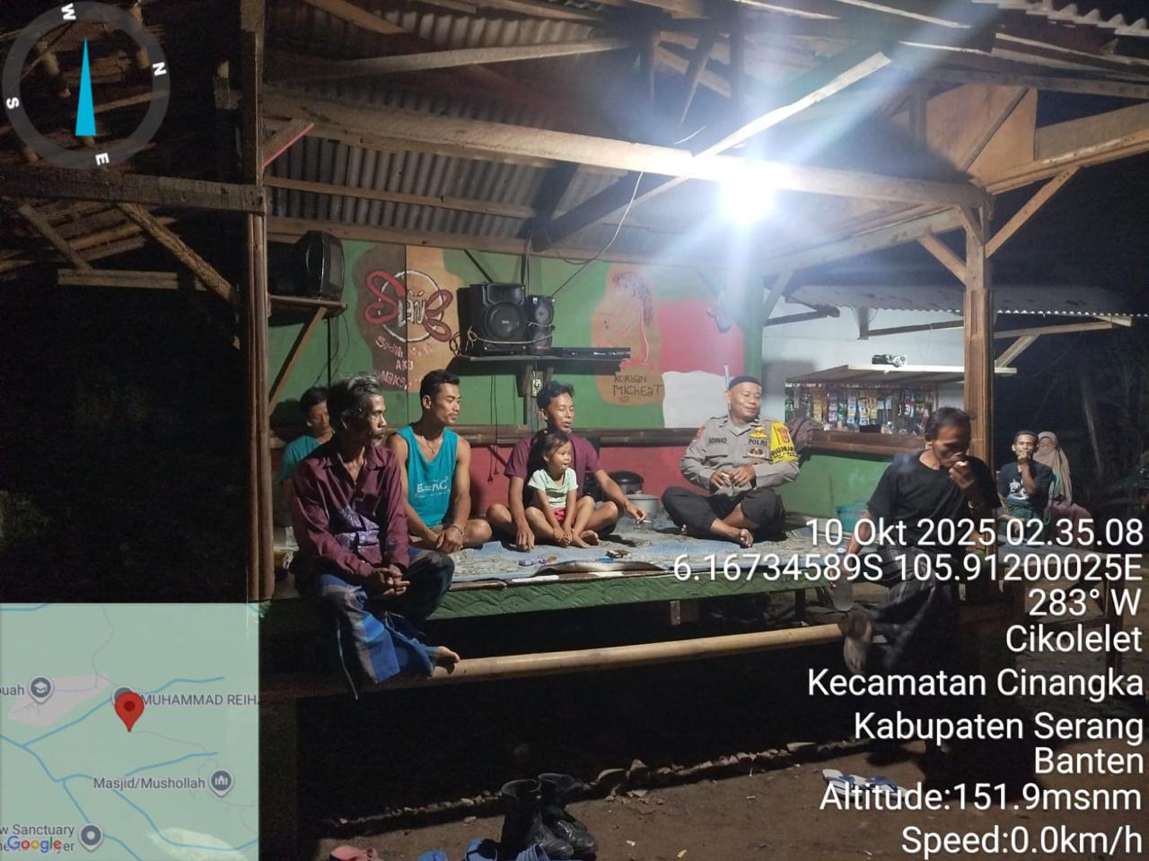 *Polres Cilegon* || Personil Bhabinkamtibmas Polsek Cinangka melaksanakan Program Komandan Wish Kapolda Banten RONDA SATKAMLING menyampaikan komunikasi dengan Petugas Siskamling agar berperan aktif dalam menciptakan Harkamtibmas yang aman dan Kondusif, Jumat (10/10/2025).