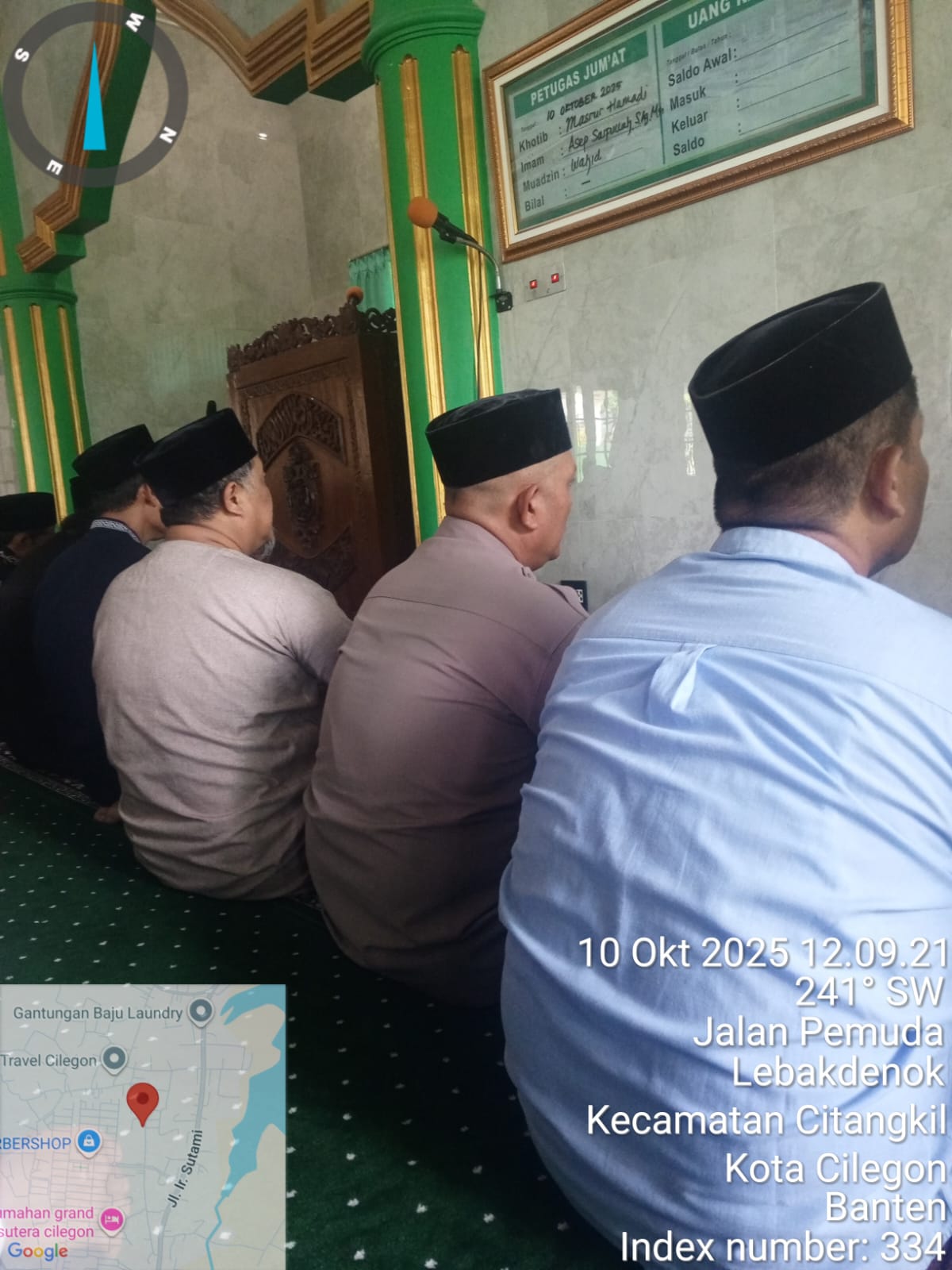 Cilegon - Dalam Rangka Implementasi Program Kapolda Banten Yaitu Sholat Jum’at Keliling Dan Berjama’ah Serta Memakmurkan Masjid, Bhabinkamtibmas Polsek Ciwandan Polres Cilegon Polda Banten Sholat Berjama’ah dan Bersilaturahmi Bersama masyarakat sebagai upaya meningkatkan Ukhuwah Islamiyah dalam menjalin silaturahmi dan membangun komunikasi yang baik,Jum’at (09/19/2025).