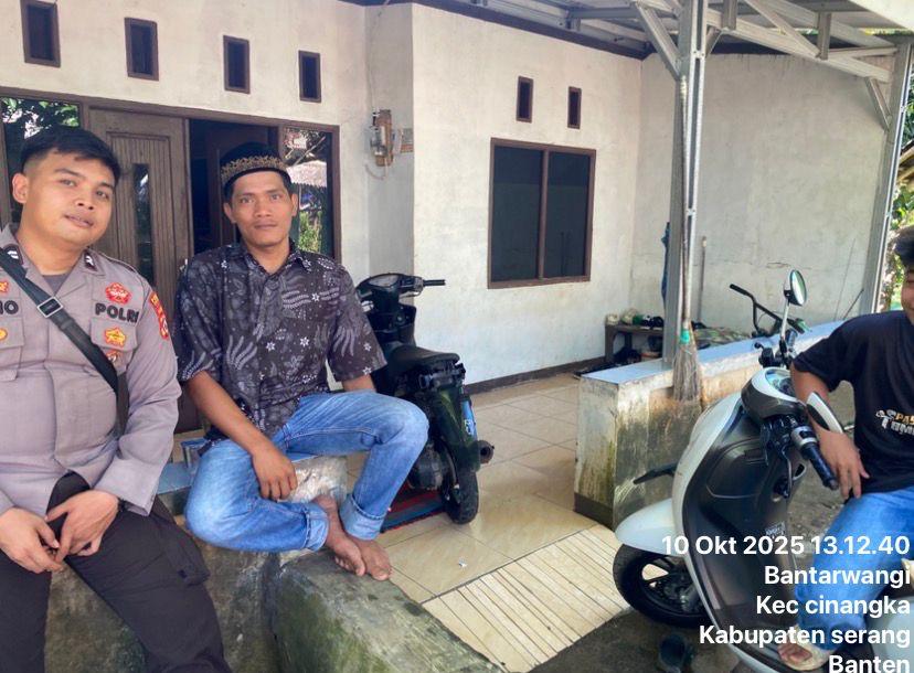 *Polres Cilegon* - Guna Menekan Gangguan Kamtibmas (GKTM) ,Bhabinkamtibmas Polsek Cinangka Polres Cilegon Polda Banten melakukan kegiatan Sambang di daerah hukum Polsek Cinangka, Sabtu (11/10/2025).