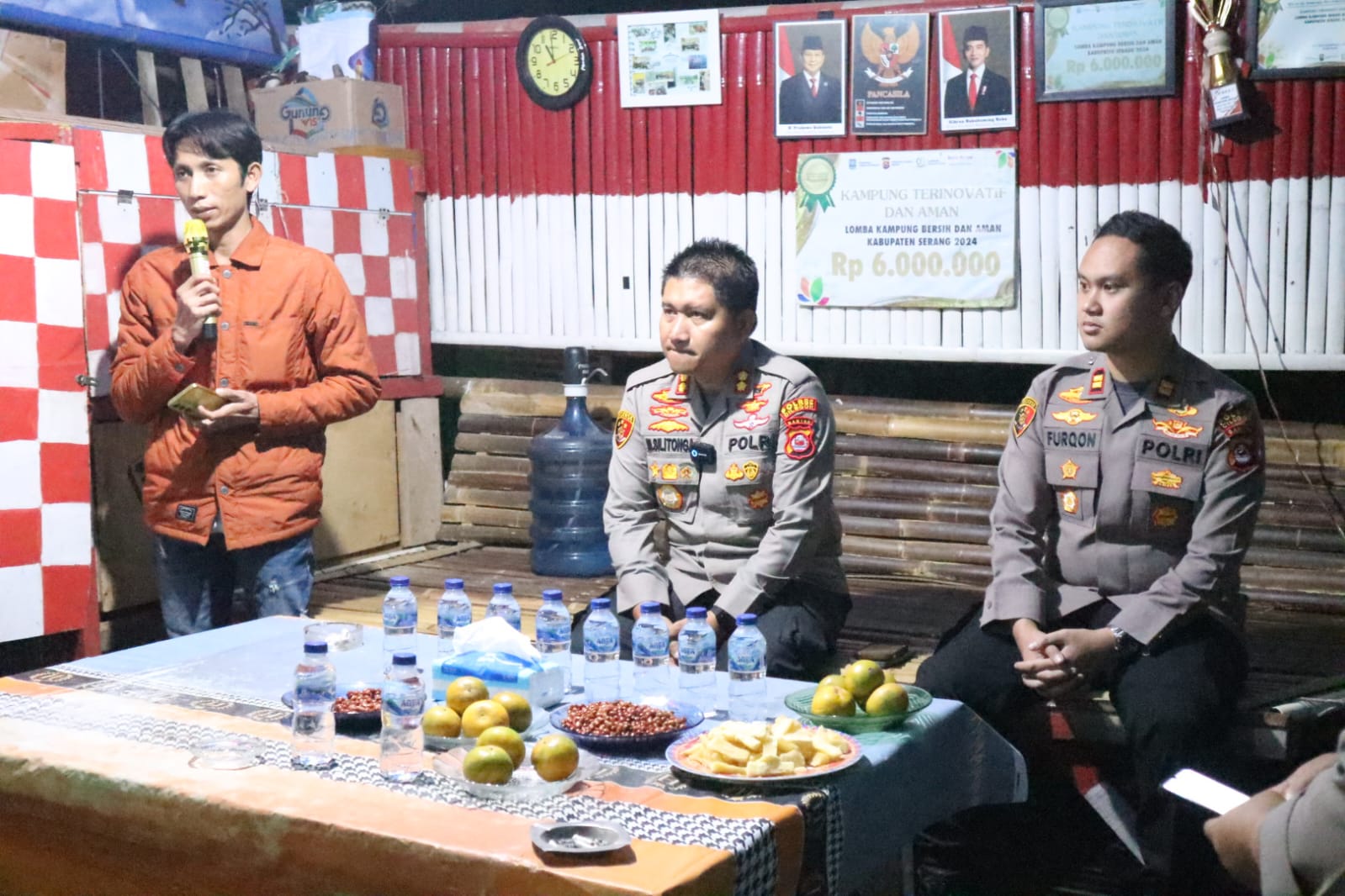 Cilegon – Dalam upaya memperkuat kemitraan antara Polri dan masyarakat dalam menjaga keamanan lingkungan, Kapolres Cilegon Polda Banten, AKBP Dr. Martua Raja Taripar Laut Silitonga, S.H., S.I.K., M.Si., melaksanakan kunjungan ke Pos Kamling Pandan Duri di Kampung Sumuranja Sabrang, Desa Sumuranja, Kecamatan Puloampel, Kabupaten Serang, Sabtu malam (11/10/2025).