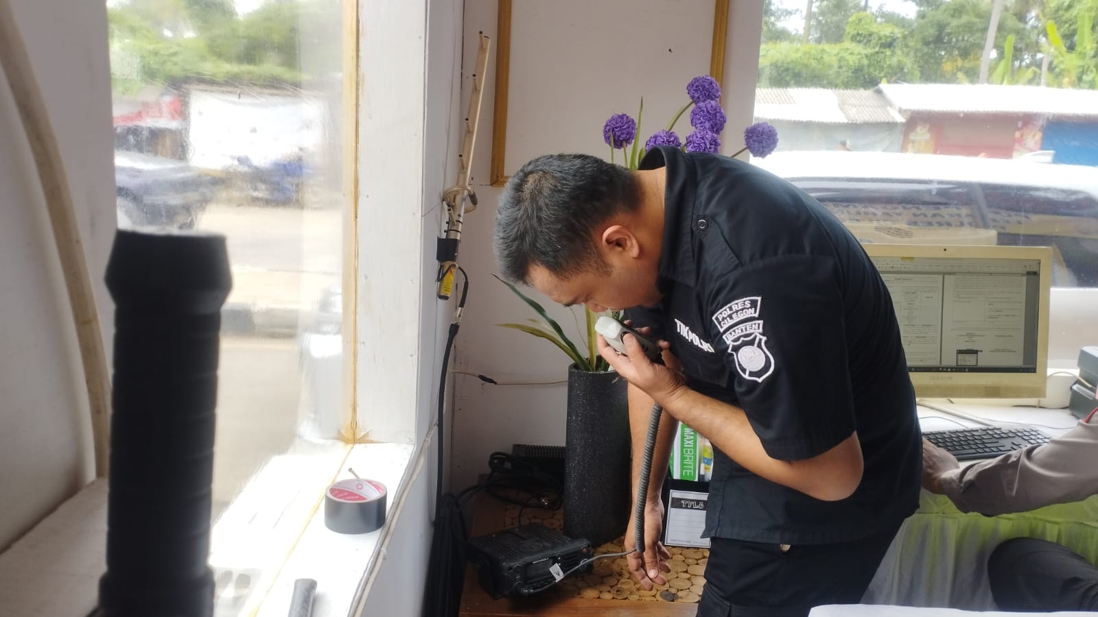 Anggota Tik Polres Cilegon Menyiapkan Sarana dan Prasarana Alkom Dalam pelaksanaan tugas tersebut anggota TIK Polres Cilegon yang bertanggung jawab untuk menyiapkan peralatan sarana alkom berupa handy talky. Selain itu agar di tidak ada gangguan pada jaringan, sebelum pelaksanaan anggota TIK melakukan pemeriksaan terhadap sarana dan prasarana tersebut . Satu jam sebelum sarana alkom digunakan. Kapolres Cilegon AKBP. DR. MARTUA RAJA TARIPAR LAUT SILITONGA. melalui Kasi TIK IPTU Lukman menyampaikan bahwa “untuk menunjang kelancaran penyampaian informasi anggota TIk Polres Cilegon selalu memeriksa sarana dan prasarana tersebut, sebelum maupun pada saat pelaksanaan akan selalu di monitor