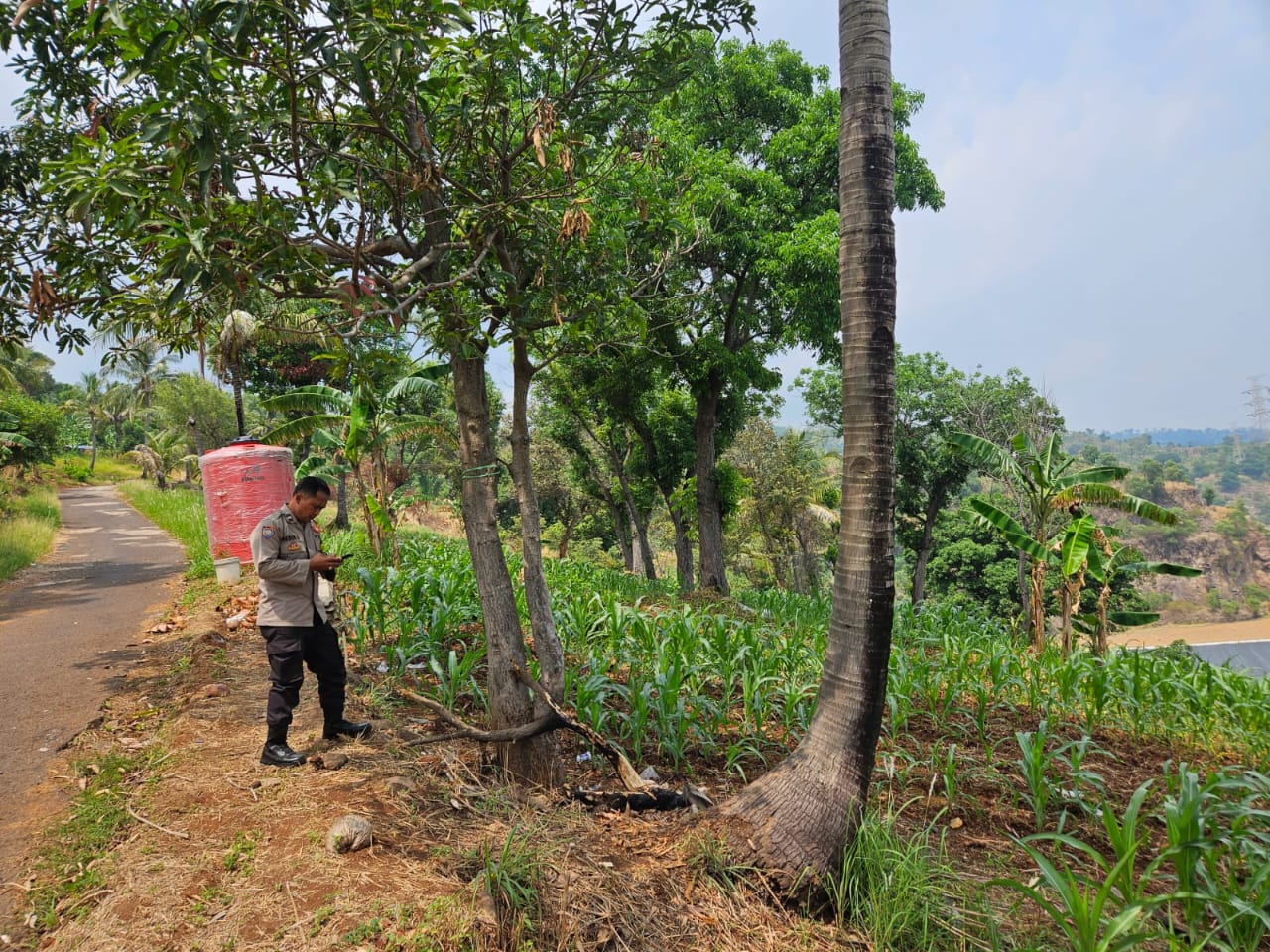 Oleh sebab itu Kapolsek Pulomerak dan  bhabinkamtibmas polsek Pulomerak bersama masyarakat tani kebon pisang Kel. Rawaarum kec. Grogol saat ini lakukan perawatan tanaman jagung, ujarnya