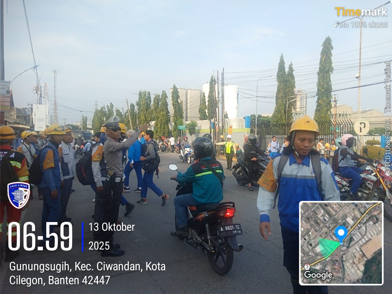 Cilegon - Personil  Polsek Ciwandan Polres Cilegon Polda Banten melaksanakan giat Strong Poin Pengaturan Lalu Lintas Disimpang Brown Kelurahan Gunung Sugih guna menciptakan ketertiban, keamanan dan Kelancaran Lalu-lintas bagi masyarakat, Senin (13/10/2025).