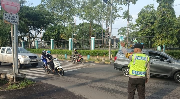Selain melakukan pengaturan lalu lintas, personel Polsek Purwakarta juga memberikan imbauan kepada para pengendara agar selalu mematuhi peraturan lalu lintas dan mengutamakan keselamatan.