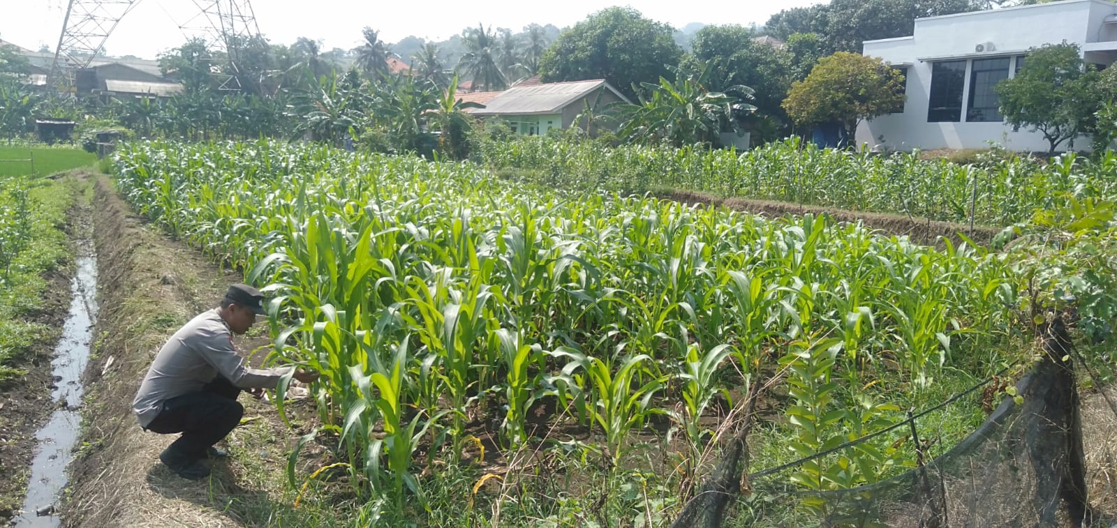 Oleh sebab itu Kapolsek Pulomerak dan  bhabinkamtibmas polsek Pulomerak bersama masyarakat tani kebon pisang Kel. Lebakgede kec. Pulomerak saat ini lakukan perawatan tanaman jagung, ujarnya