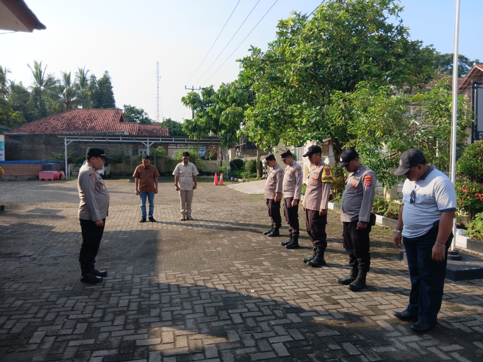 Kapolsek beserta personil polsek mancak, melaksanakan kegiatan rutin apel pagi yang diikuti oleh seluruh personel, bertempat di halaman Mako Polsek Mancak. Kegiatan dipimpin langsung oleh Kapolsek Mancak, IPTU KHAIRUL