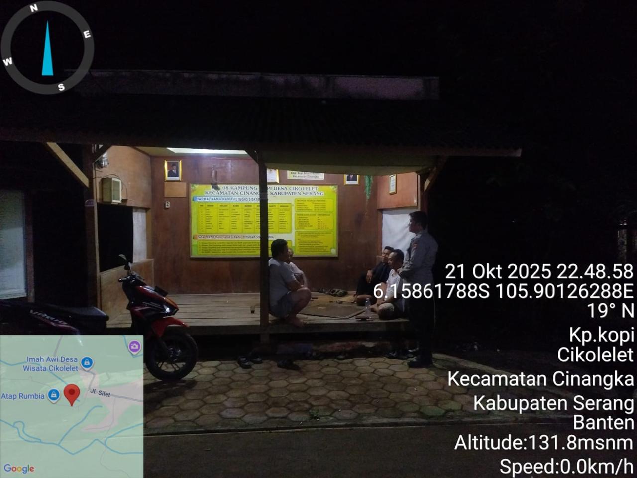 *Polres Cilegon* || Personil Bhabinkamtibmas Polsek Cinangka melaksanakan Program Komandan Wish Kapolda Banten RONDA SATKAMLING menyampaikan komunikasi dengan Petugas Siskamling agar berperan aktif dalam menciptakan Harkamtibmas yang aman dan Kondusif, Selasa (22/10/2025).