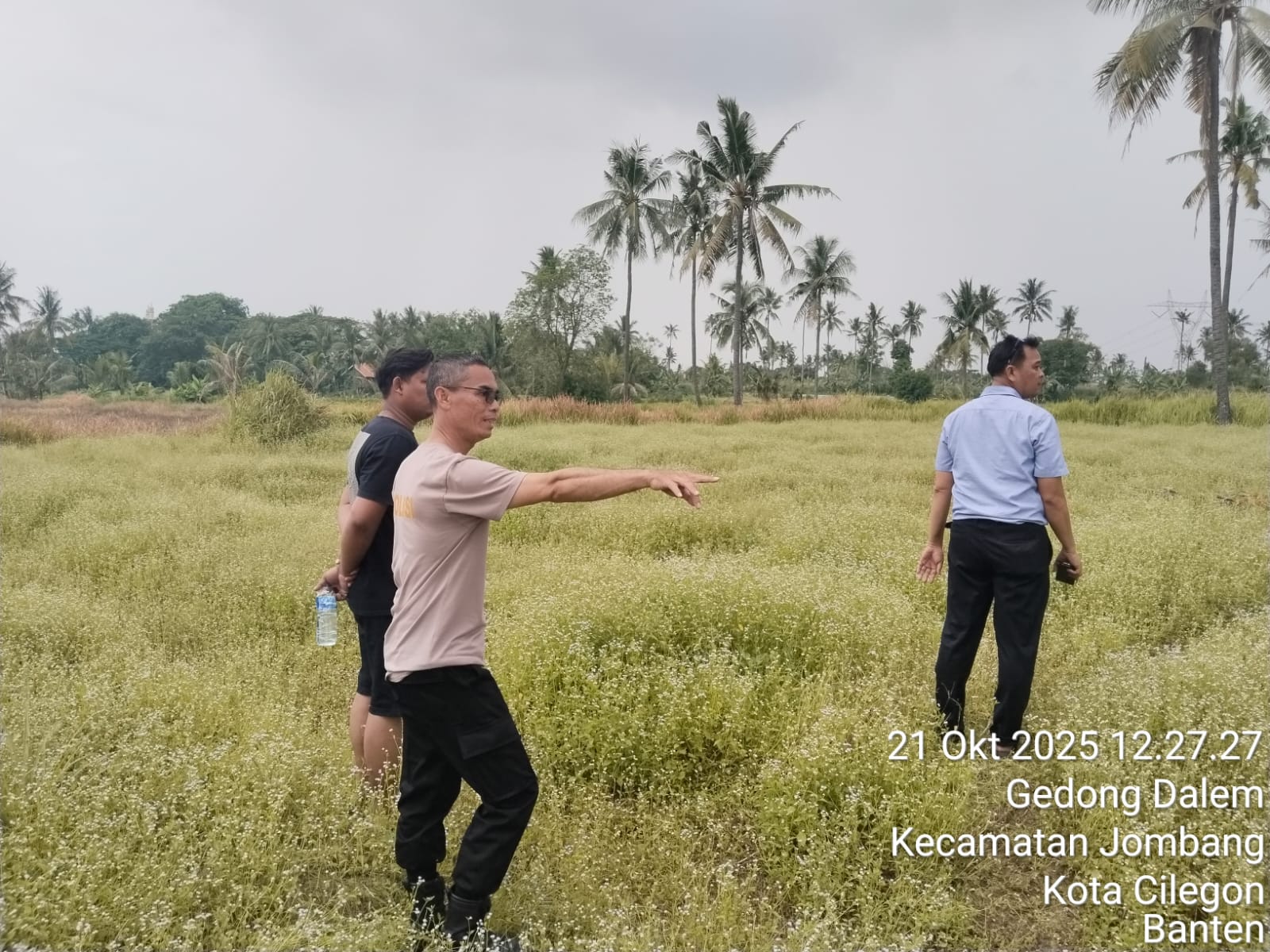 Cilegon - Melaksanakan program pemerintah, penanaman jagung dalam program ketahanan pangan, personil Polsek Kp Merak Polres Cilegon Polda Banten melaksanakan kegiatan peninjauan serta monitoring lokasi yang nantinya akan ditanami bibit jagung unggul di Desa Mangkunegara Kecamatan Bojonegara, Kabupaten Serang, Rabu (22/10/2025).
