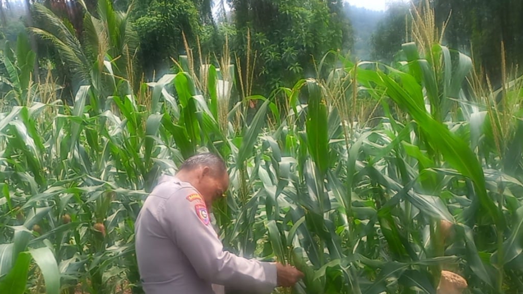 Dukung Ketahanan Pangan, Kapolsek Pulomerak Lakukan Pembinaan dan Perawatan Tanaman Jagung