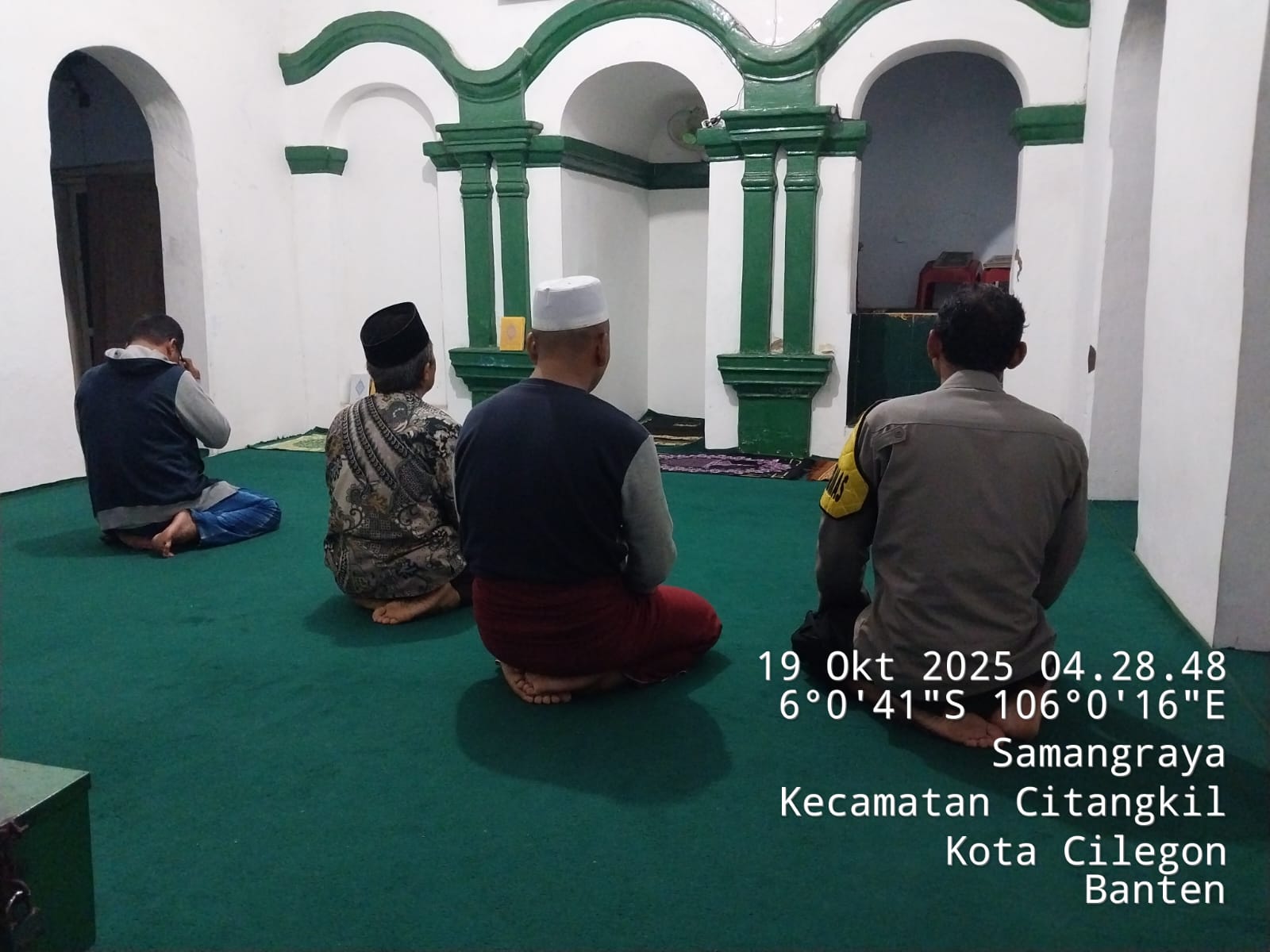 Dalam Pembinaan Rohani, Bhabinkamtibmas Polsek Ciwandan Sholat Subuh Berjama’ah.