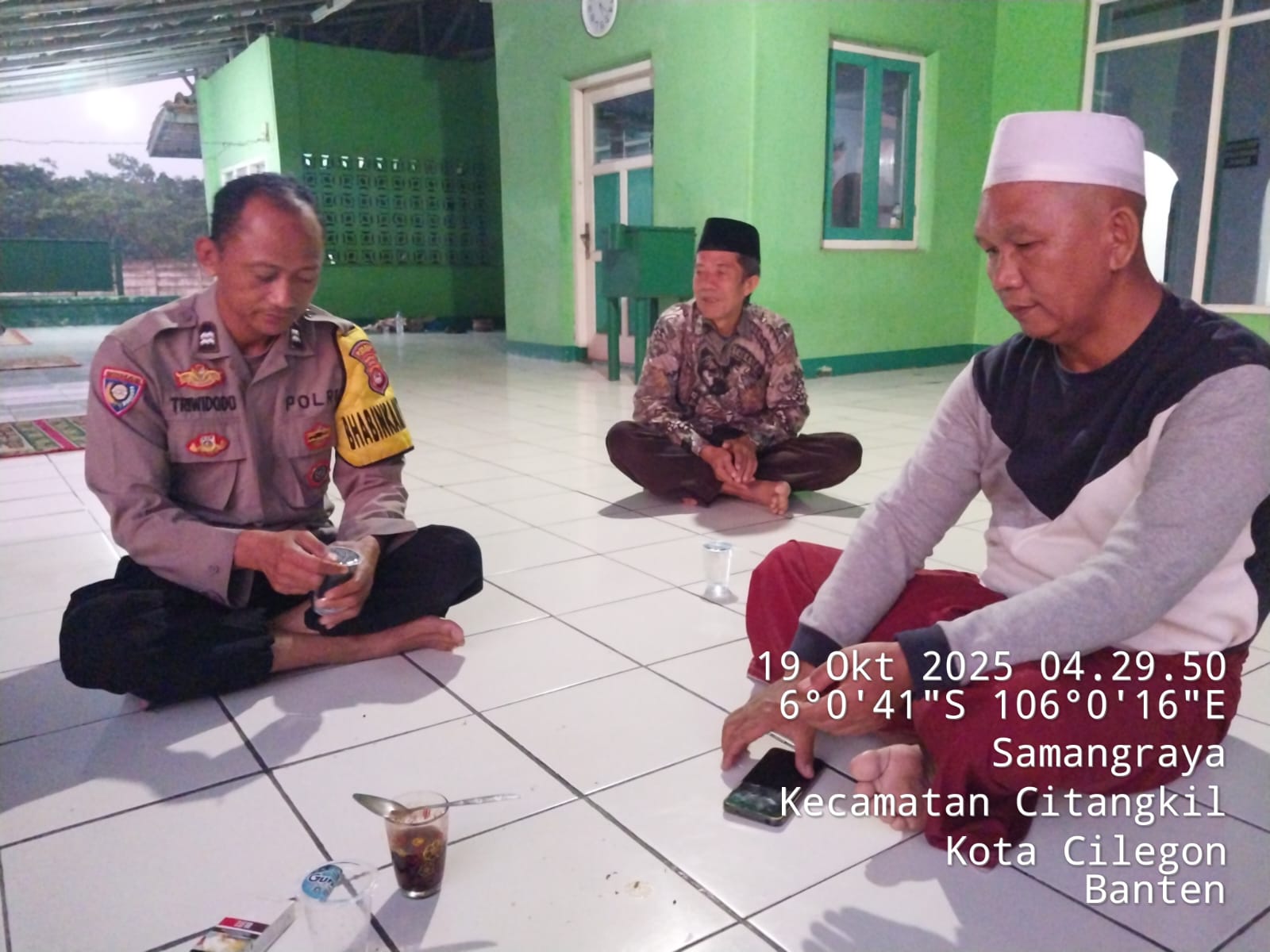 “Dalam kegiatan tersebut, Personil Polsek Ciwandan Polres Cilegon Polda Banten turut berbaur dengan jemaah masjid dalam melaksanakan shalat subuh berjamaah. Setelah itu, dilakukan dialog interaktif antara petugas kepolisian dan masyarakat untuk mendengarkan aspirasi serta memperoleh masukan terkait dengan situasi keamanan dan ketertiban di lingkungan sekitar,” tambah Kapolsek.