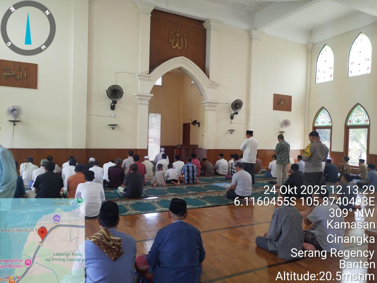 *POLRES CILEGON* - Kapolsek Cinangka Polres Cilegon Polda Banten dan Jajaran melaksanakan giat Juma't keliling dalam rangka silaturahmi menjalin kemitaraan dan menjaga Harkamtibmas di Desa Binaannya sebagai bentuk mendukung Program Quick Wins Presisi Polri, Jumat (24/10/2025).