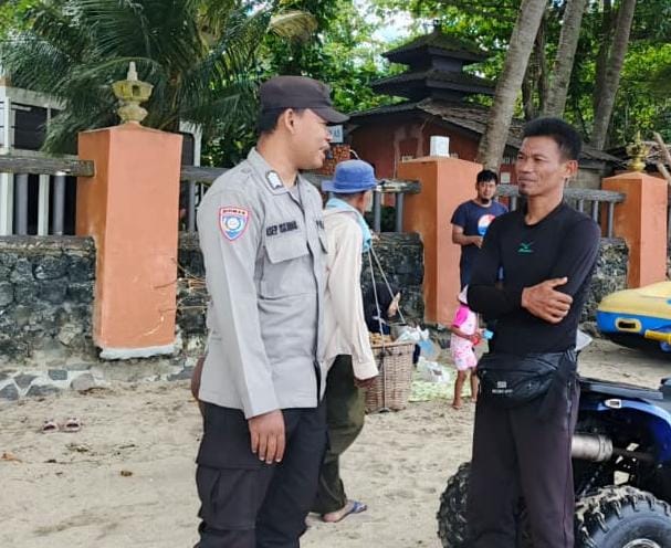 Patroli Polsek Anyar Menjaga Keamanan Lokasi Wisata Pantai Setempat