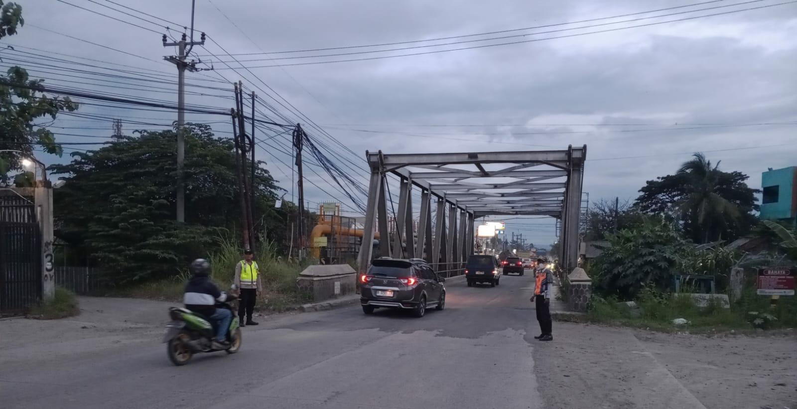 Aman Di Jalan Raya, Personel Polsek Bojonegara Bersama Dishub Laksanakan Pengaturan Lalu Lintas Di Persimpangan Jembatan Teratai