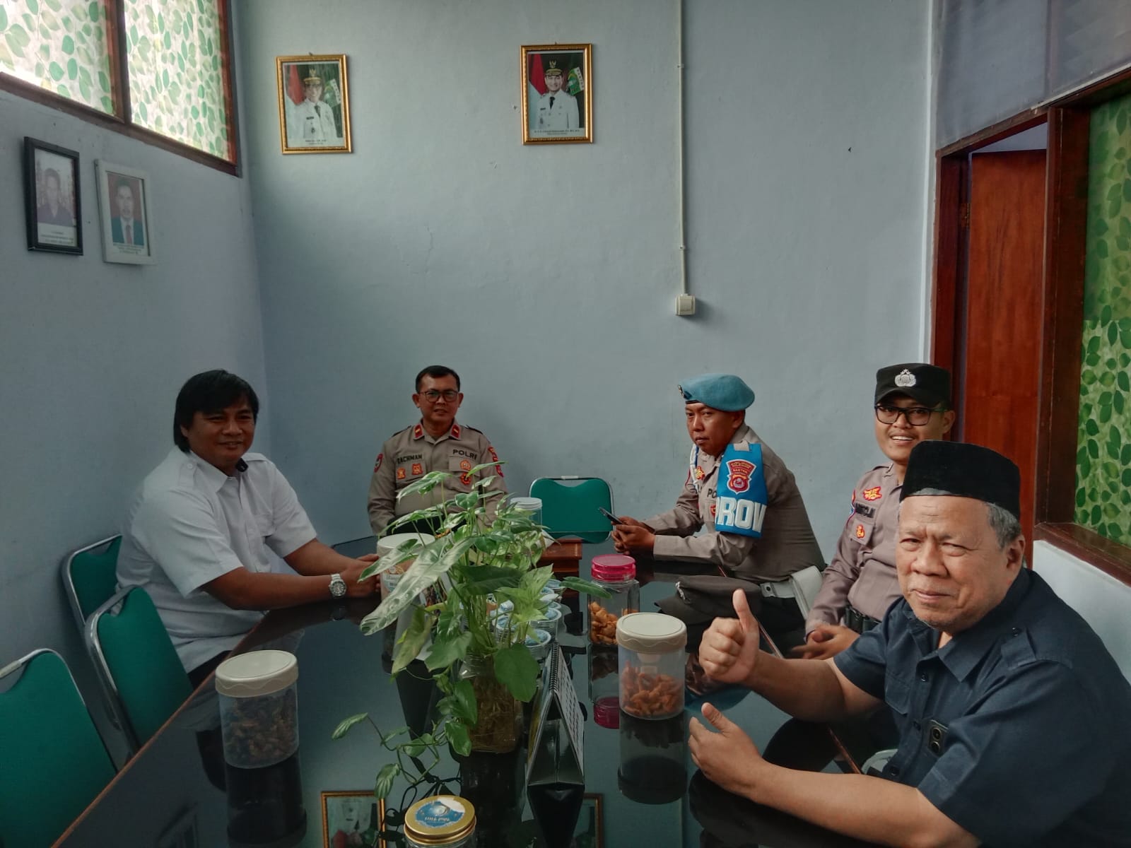 Dalam suasana yang hangat dan penuh keakraban, Bripka Anto Maulana menyampaikan pesan-pesan kamtibmas kepada kepala sekolah dan para guru di ruang kepala sekolah. Ia menekankan pentingnya kerjasama antara pihak sekolah dan kepolisian dalam mencegah tindak kriminalitas dan kenakalan remaja di lingkungan sekolah.