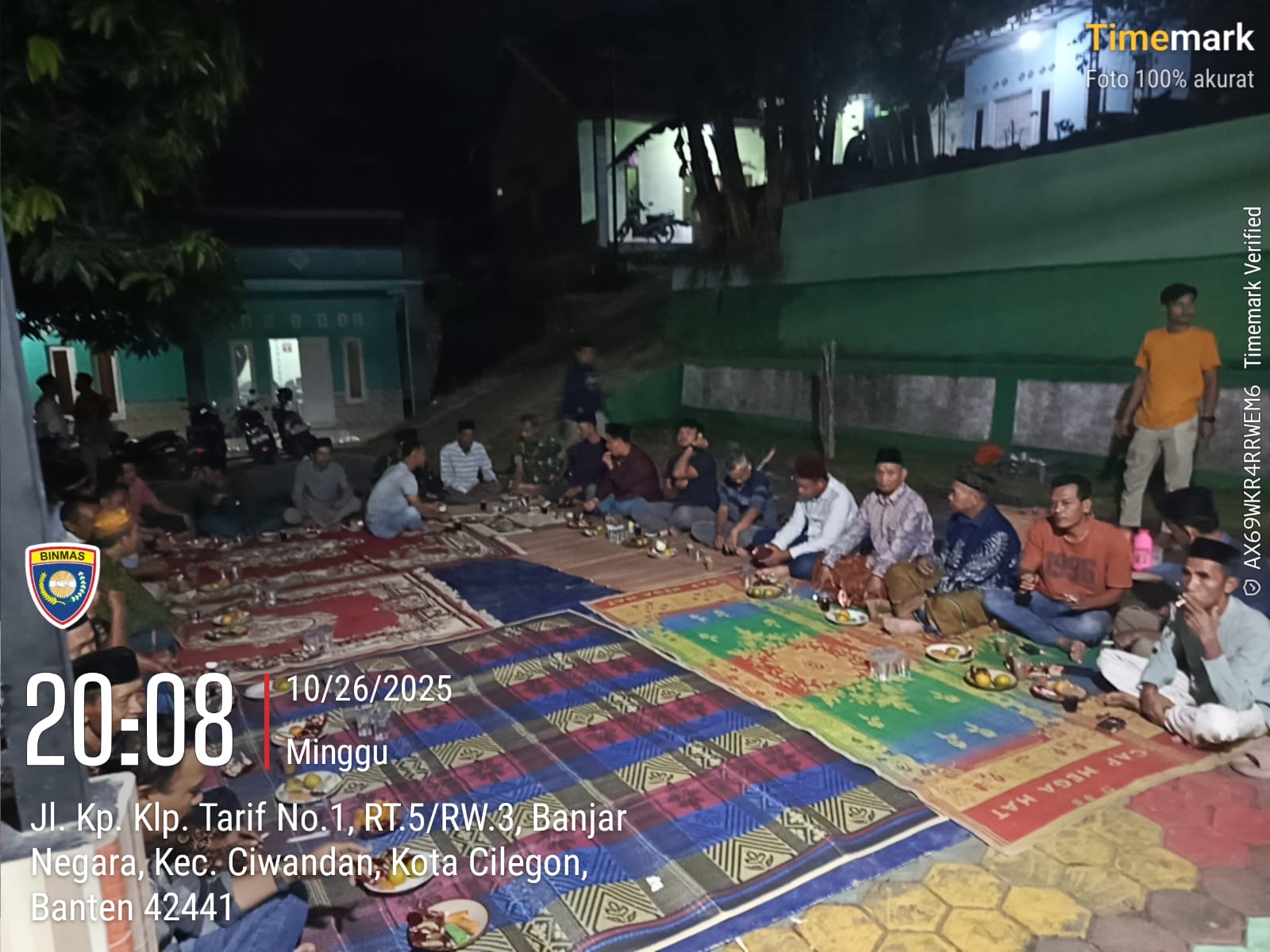Cilegon - Bhabinkamtibmas Polsek Ciwandan Polres Cilegon Polda Banten menghadiri kegiatan Doa Bersama dan Dilanjutkan Pengajian Rutin dilingkungan Kelurahan Banjarnegara Kecamatan Ciwandan Kota Cilegon, Senin (27/10/2025).