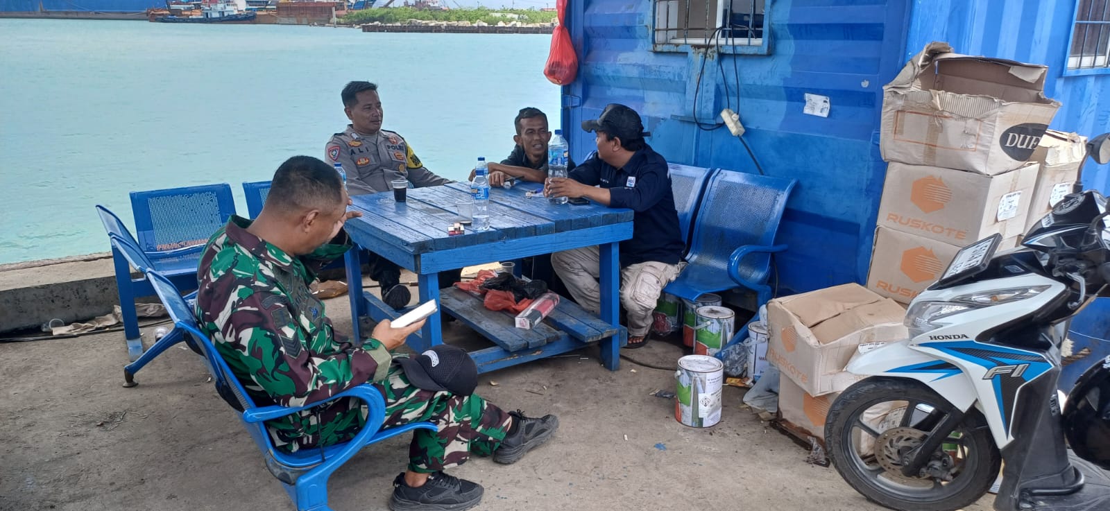 Jalin Silaturahmi, Personil Bhabinkamtibmas Pelabuhan Polsek KP Banten berbincang dengan Buruh Pelabuhan