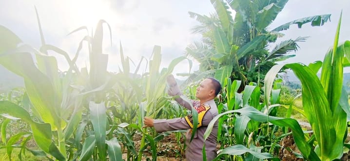AIPDA ANTON SUDERAJAT LAKUKAN MONITORING TANAMAN JAGUNG