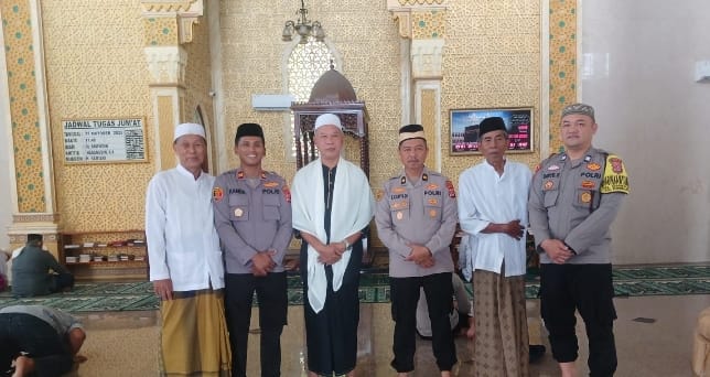 -POLRES CILEGON–Polda Banten. Kapolsek Purwakarta IPTU Sukanda bersama Kabag SDM Polres Cilegon  Kompol Entang Cahyadi melaksanakan kegiatan Jumat Keliling (Jumling) di Masjid Al falah, Kelurahan Kebondalem, Kecamatan Purwakarta. Kegiatan ini bertujuan untuk menjalin silaturahmi dengan masyarakat sekaligus menyampaikan himbauan terkait keamanan dan ketertiban masyarakat (kamtibmas). Jumat.(31-10-2025).