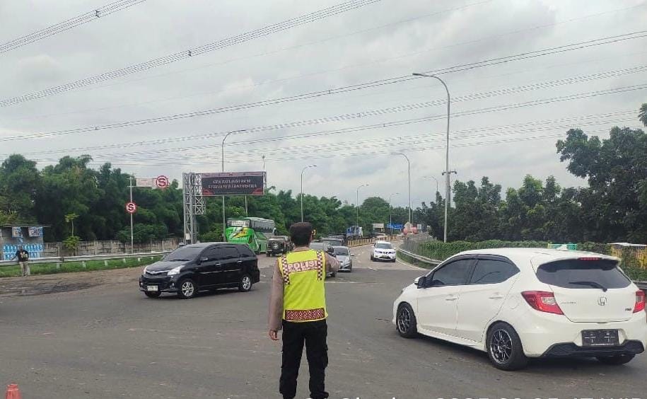 Cegah kemacetan, personil polsek cibeber lakukan pengaturan