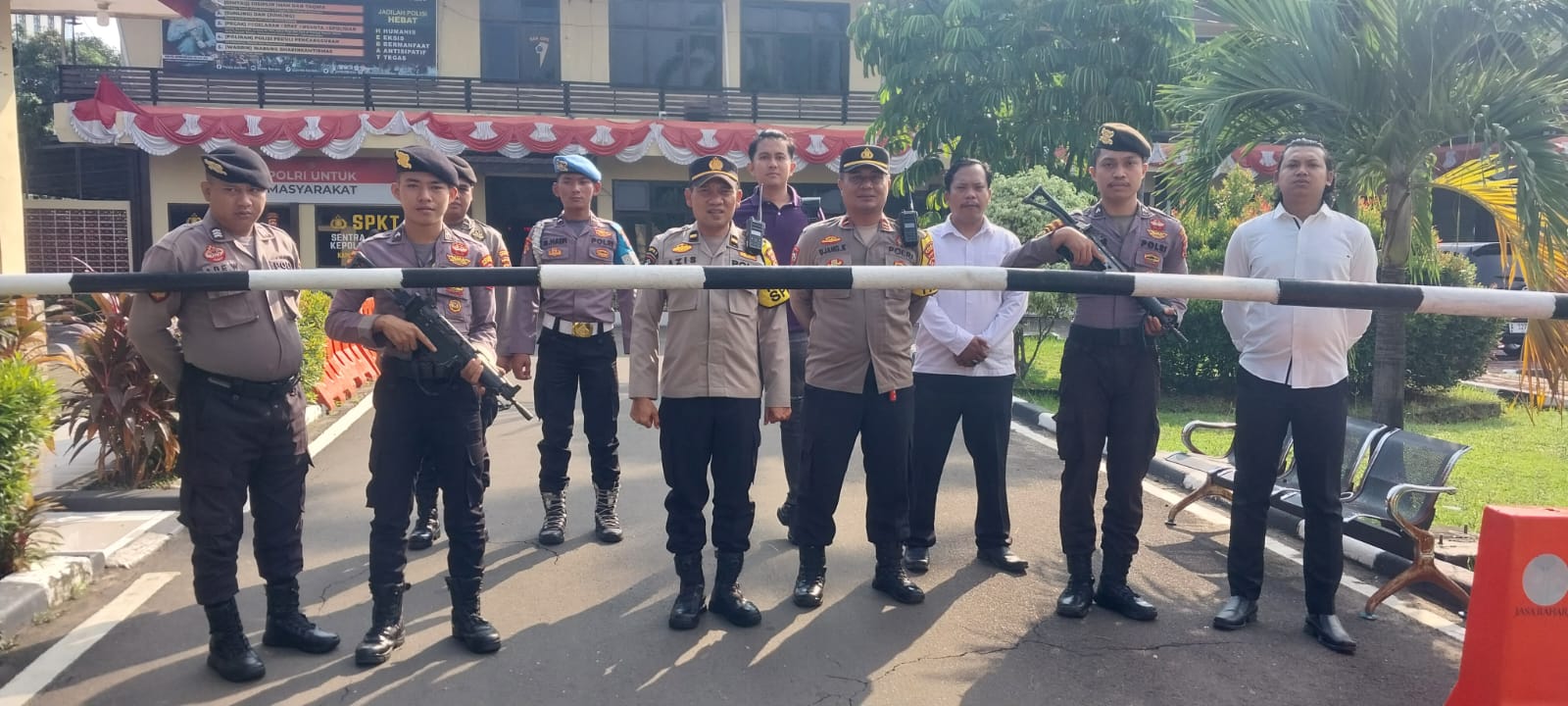 Cilegon, personel Satreskrim Polres Cilegon Polda Banten melaksanakan piket di penjagaan pintu masuk Polres Cilegon Polda Banten untuk memastikan mako Polres Cilegon dalam keadaan aman dan nyaman dalam melayani Masyarakat tanpa adanya gangguan kejahatan. Jumat  (31/10/2025).
