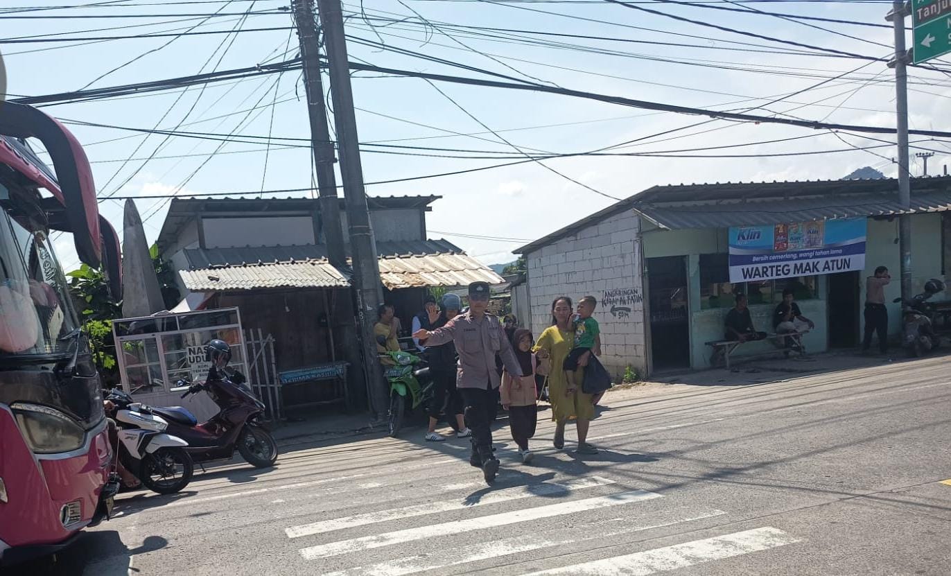 Personil Polsek Anyar Dalam Pengaturan Lalu Lintas di Jalur Anyar - Cinangka