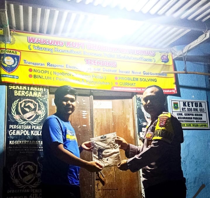 -POLRES CILEGON–Polda Banten Aipda Anton Sutradjat, Bhabinkamtibmas Kelurahan Pabean, Polsek Purwakarta, Polres Cilegon, melaksanakan kegiatan sambang ke warung kopi Bhabinkamtibmas di lingkungan Gempol Kulon, Kelurahan Pabean, Kecamatan Purwakarta, Kota Cilegon. Dalam kesempatan tersebut, Aipda Anton berbincang santai dengan warga serta memberikan bantuan sarana kontak berupa baju koko kepada salah satu warga binaannya.Sabtu.(01-11-2025).