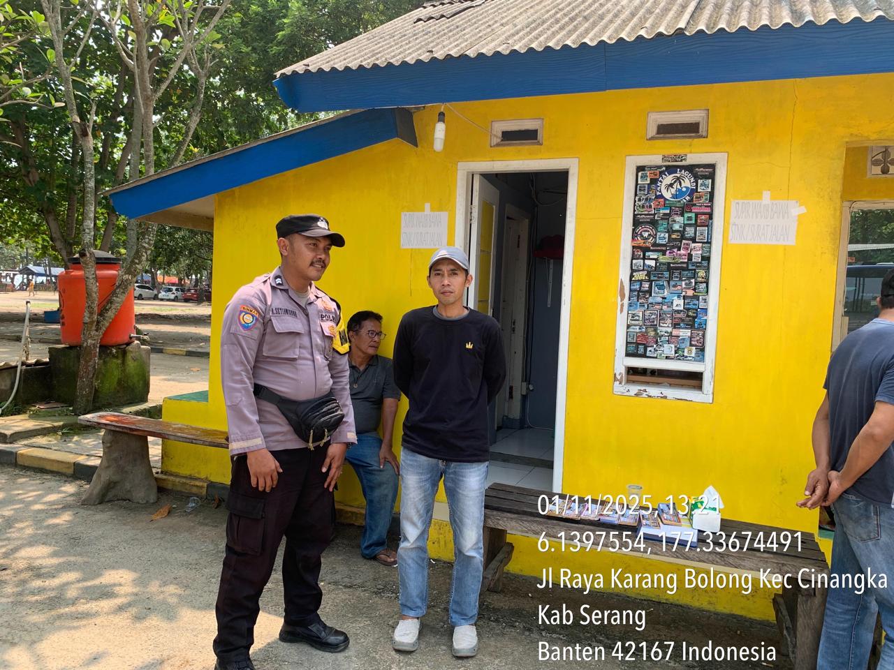 _*POLRES CILEGON*_ | Polsek Cinangka Polres Cilegon Polda Banten melaksanakan kegiatan patroli Serta memberikan Himbauan kepada pengunjung pantai yang berwisata dan Sambang kepada petugas penjaga pantai dan juga antisipasi harkamtibmas di Wilayah Hukum Polsek Cinangka Polres Cilegon Polda Banten, Sabtu (01/11/2025).