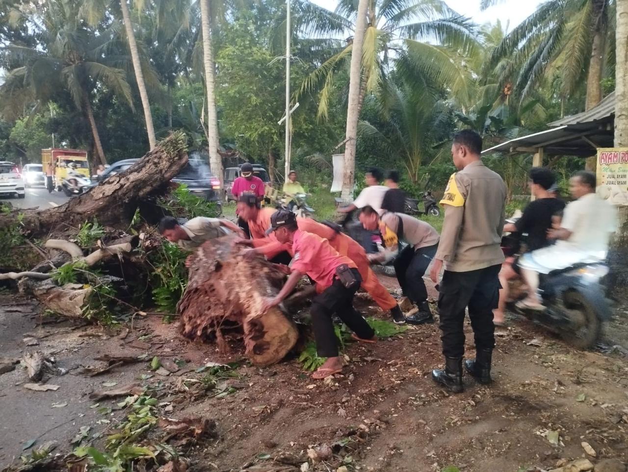 Kapolres Cilegon Polda Banten AKBP Martua Raja Taripar Laut Silitonga Melalui Kapolsek Cinangka Polres Cilegon Polda Banten IPTU Rusnata Mengatakan di Jl Raya Cinangka Palka tepatnya di Kp.Lebaksawo Ds. Sindanglaya Kec. Cinangka Kab. Serang telah terjadi pohon tumbang yang terjadi angin kencang serta pohon yang sudah tua Tidak ada jiwa korban dalam kejadian tersebut, namun berdampak pada arus lalulintas dan menimbulkan antrian kendaraan dari arah Cilegon menuju Cinangka maupun sebaliknya