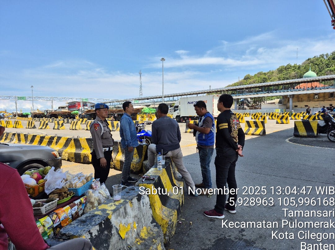 Cilegon - Personel Polsek Kskp Merak Polres Cilegon Polda Banten melaksanakan sambang dan patroli kawasan pelabuhan merak dalam rangka menjaga Harkamtibmas di Kawasan Pelabuhan Merak, Sabtu (01/11/2025).