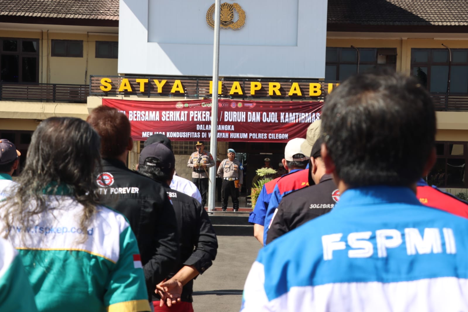 Apel Bersama Buruh dan Ojol, Kapolres Cilegon Ajak Perkuat Persatuan dan Jaga Kondusifitas Kota