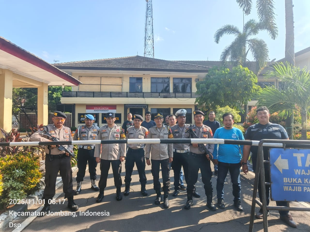 Cilegon, personel Satreskrim Polres Cilegon Polda Banten melaksanakan piket di penjagaan pintu masuk Polres Cilegon Polda Banten untuk memastikan mako Polres Cilegon dalam keadaan aman dan nyaman dalam melayani Masyarakat. Sabtu (0q/11/2025).
