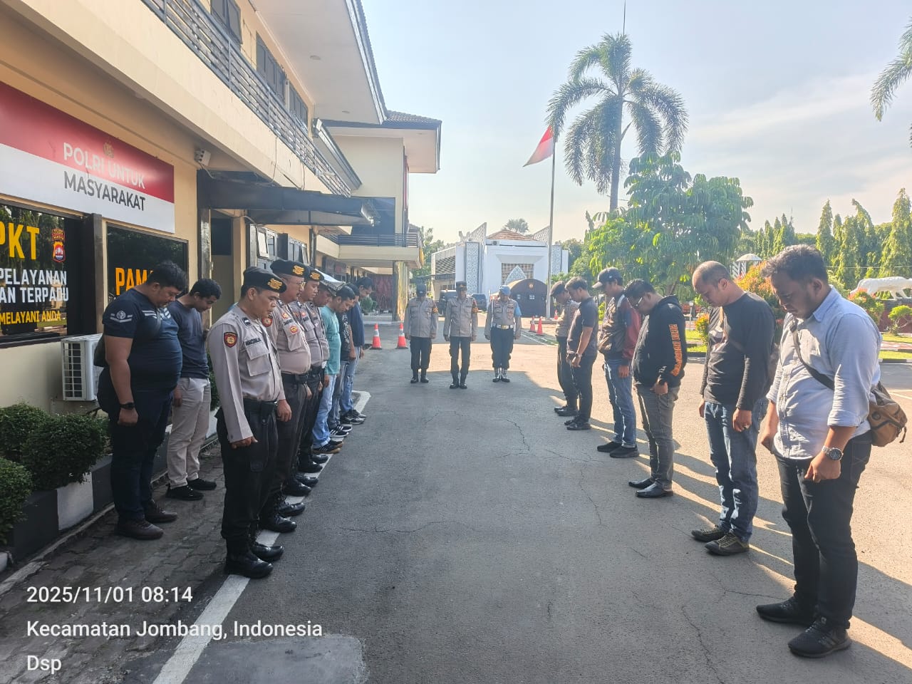 Cilegon, personel Satreskrim Polres Cilegon Polda Banten melaksanakan piket di penjagaan pintu masuk Polres Cilegon Polda Banten untuk memastikan mako Polres Cilegon dalam keadaan aman dan nyaman dalam melayani Masyarakat. Sabtu (0q/11/2025).