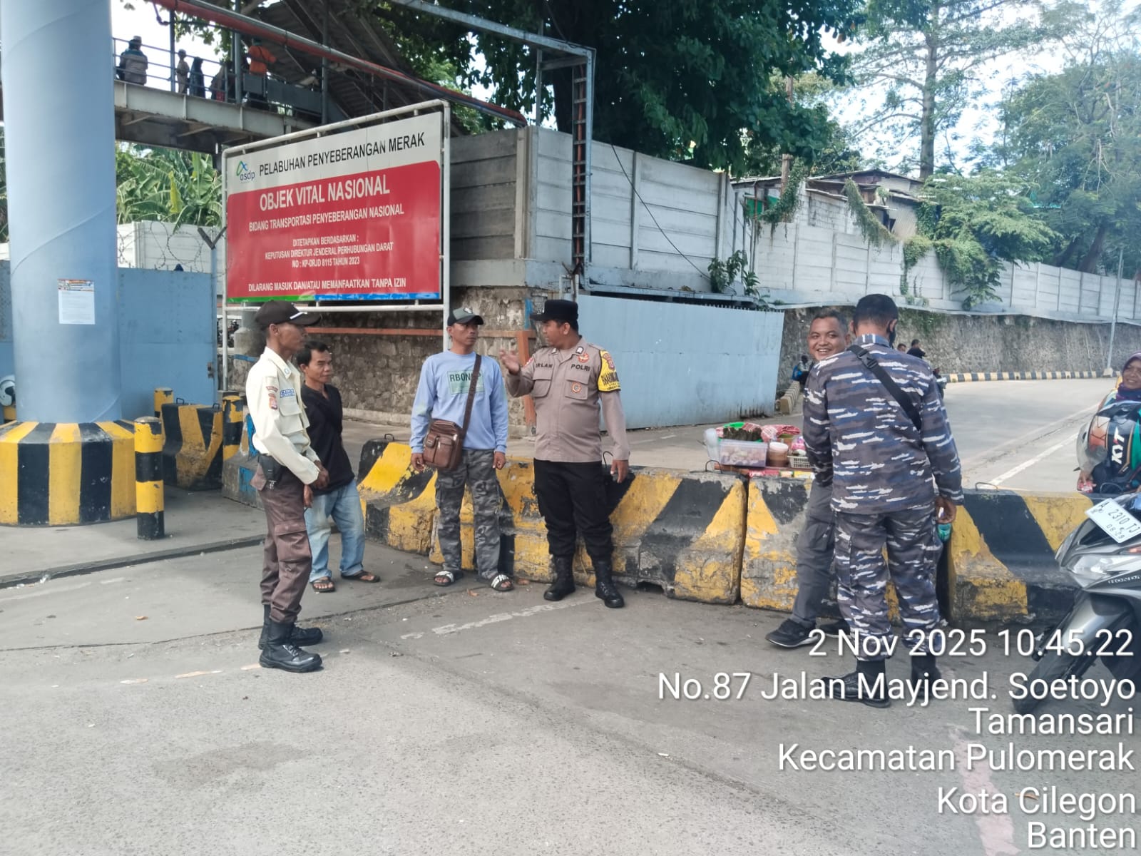Cilegon - Personel Polsek Kskp Merak Polres Cilegon Polda Banten melaksanakan sambang dan patroli kawasan pelabuhan merak dalam rangka menjaga Harkamtibmas di Kawasan Pelabuhan Merak, Minggu (02/11/2025).