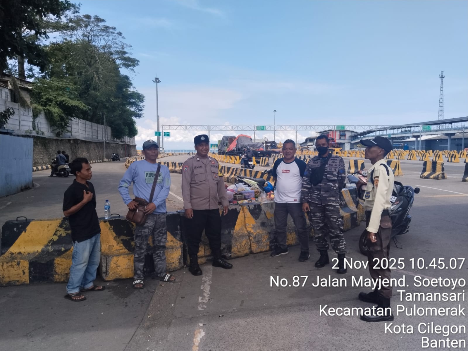 Cilegon - Personel Polsek Kskp Merak Polres Cilegon Polda Banten melaksanakan sambang dan patroli kawasan pelabuhan merak dalam rangka menjaga Harkamtibmas di Kawasan Pelabuhan Merak, Minggu (02/11/2025).