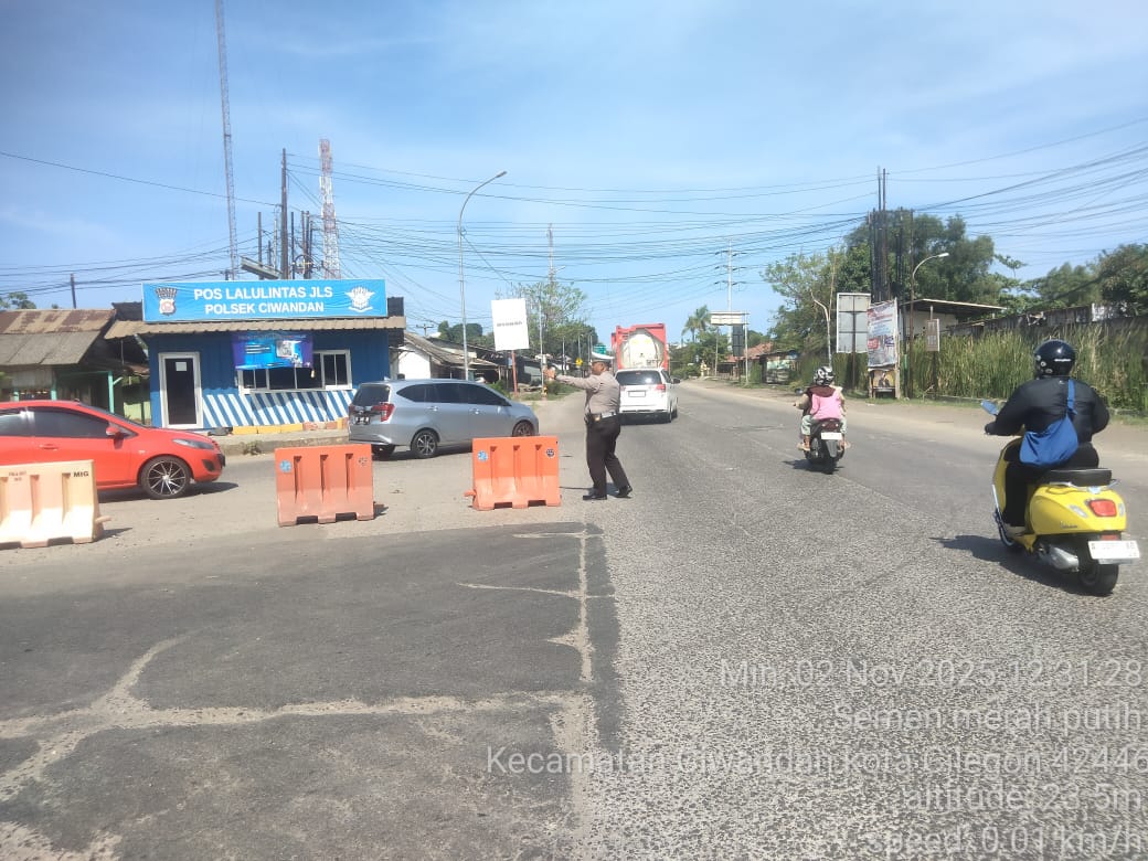 Cilegon - Weekend kali ini Personil Unit Lantas Polsek Ciwandan Polres Cilegon Polda Banten melaksanakan pengaturan lalu lintas di Simpang JLS tepatnya di Pertigaan depan PT. Semen Indonesia Demi Kelancaran Arus Lalu-lintas Wisata, Minggu (02/11/2025).