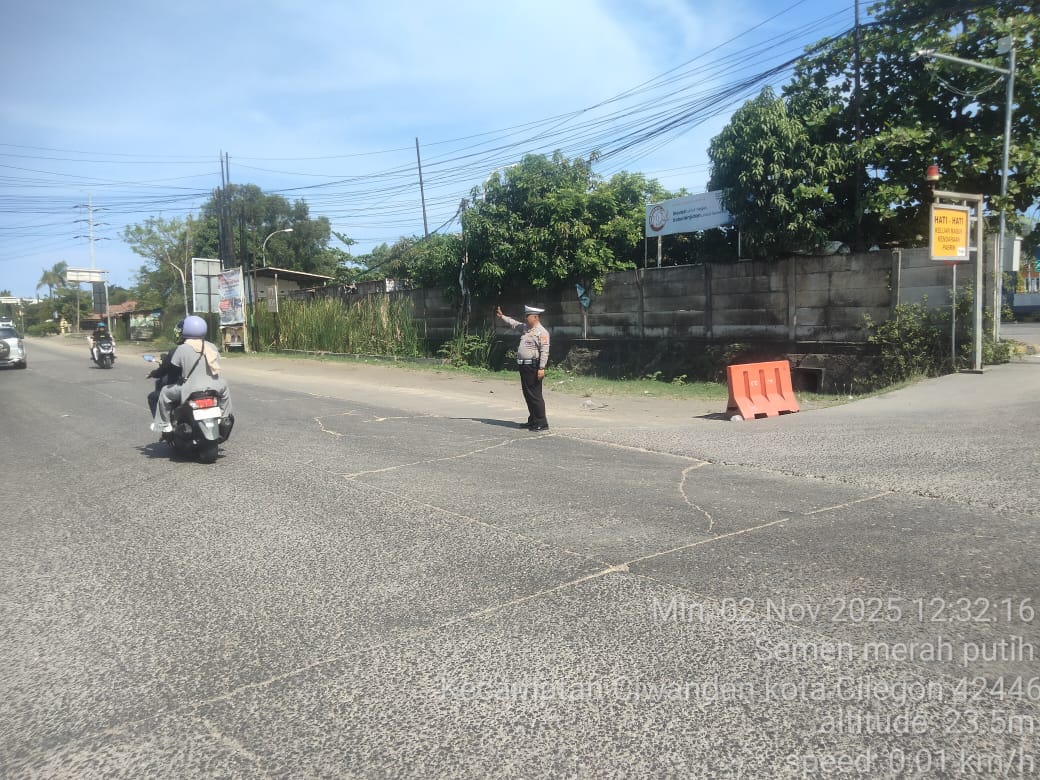 Cilegon - Weekend kali ini Personil Unit Lantas Polsek Ciwandan Polres Cilegon Polda Banten melaksanakan pengaturan lalu lintas di Simpang JLS tepatnya di Pertigaan depan PT. Semen Indonesia Demi Kelancaran Arus Lalu-lintas Wisata, Minggu (02/11/2025).