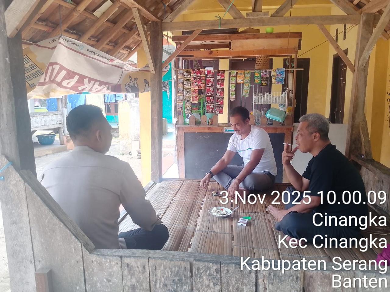 Kapolres Cilegon Polda Banten AKBP Martua Raja Taripar Laut Silitonga Melalui Kapolsek Cinangka Polres Cilegon Polda Banten IPTU Rusnata Mengatakan kegiatan sambang ini rutin dilaksanakan oleh seorang babinkamtibmas di daerah binaannya setiap hari guna mendekatkan diri kepada masyarakat juga memberikan pesan-pesan kamtibmas diantaranya menghimbau kepada masyarakat agar meningkatkan kewaspasaan guna mencegah terjadinya tindak kriminal.
