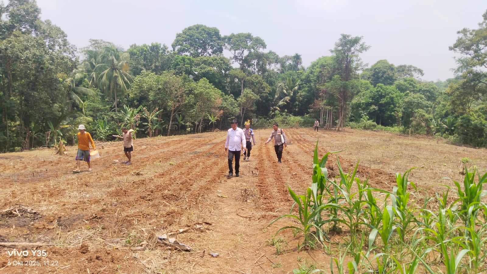 Penanaman Jagung serentak Kuartal IV Seluruh Indonesia di lahan milik kelompok tani Bpk. Maman Rt. 01/01 Kp. Macute Kel. Angsana Kec. Mancak-Serang daerah hukum Polres Cilegon.